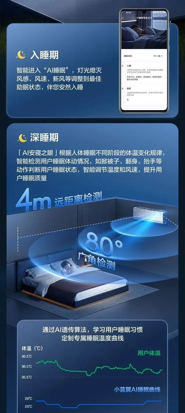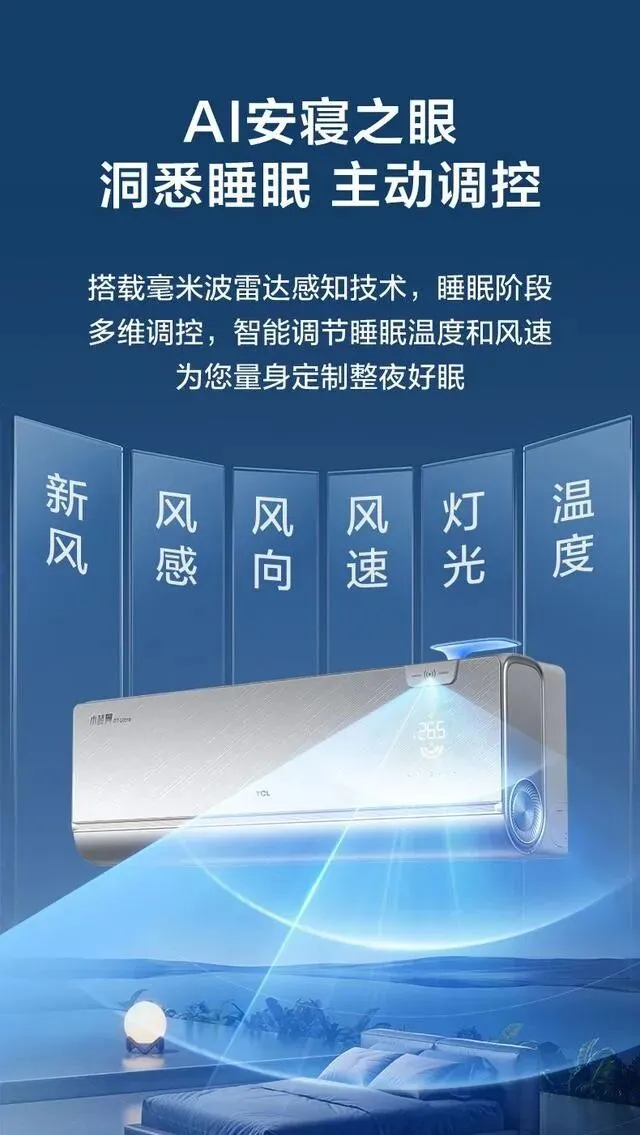 鸿蒙生态的进化还在继续,智慧家电领域已是新战场。TCL小蓝翼P7 Ultra AI健康空调12月18日发布,首批深度融入鸿蒙生态。安寝之眼睡眠科技用毫米波雷达感知微动量,AI算法精准判断睡眠阶段,入睡、深睡、晨起三段智能调节,风随人动、温度随需匹配。双循环新风技术,PM2.5置换率99.55%,CO₂ 99.1%,甲醛91.94%,一键AI好空气,空气品质随时在线。