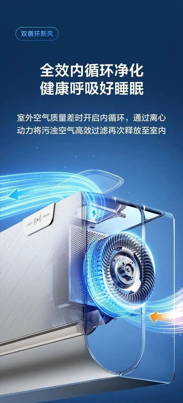 家电也能一句话操控全屋,AI语音支持百万离线指令,TVOC气体传感器实时监测有害气体,发现问题自动切换新风。智慧互联接入华为、苹果系统,手机、手表远程控制,鸿蒙生态一体打通,出门在外提前开空调,回家空气正好。不是功能堆叠,而是用AI和生态协同解决真实痛点。