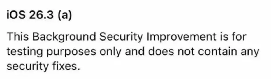 1 月 7 日凌晨,苹果推出 iOS 26.3(a)安全测试版更新,这次的更新主要对安全内容进行改进,不过并未修复任何漏洞。