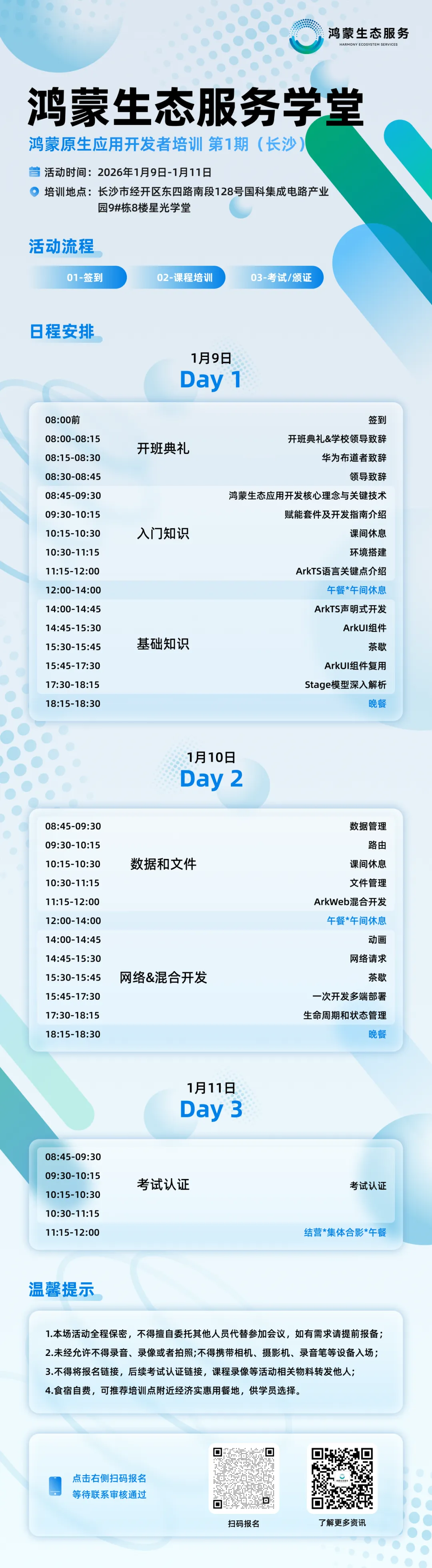 温馨提示:40个免费名额,限时发放。前20位报名免费赠送鸿蒙生态专属学习权益!快来抢占培训席位!