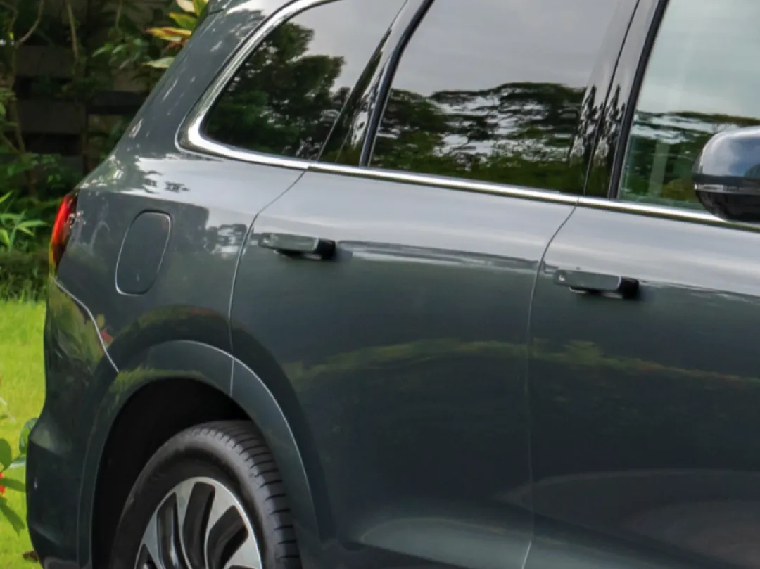同时,还有一些细节上的小改动。问界 M5 前盖上的两条彰显力量感的筋线消失不见,车侧凌厉的腰线也被抹平,原有的小溜背设计,也被更为竖直的 D 柱取代。