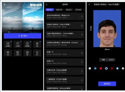 它支持证件照制作功能,提供了多种证件照尺寸和多种证件照背景,支持一键保存证件照寸照和排版照;它支持图片拼图功能,支持一次最多9张图片,支持很多种拼图比例和拼图模板,支持长图拼接、横向和竖向长图拼接。