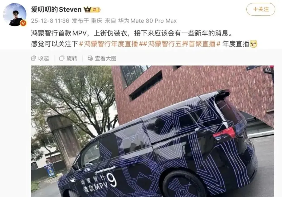 2026年刚开年,华为又在汽车圈丢下一颗深水炸弹——鸿蒙智行首款9系旗舰MPV,智界V9,要来了。