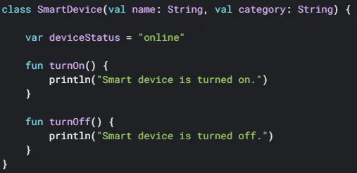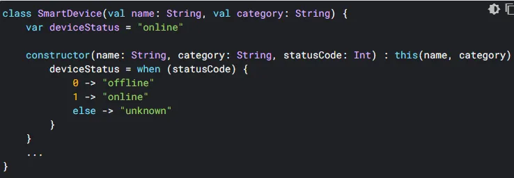 如果有多个条件,就用逗号隔开,最后需要else结尾。我们的变量也可以赋空值,但需要注意一点,类型不能直接赋null,会报错,所以需要换个写法:因而,应对可存储 null 值的变量使用可为 null 的变量,但对于永远不能存储 null 值的变量,仍应使用不可为 null 的变量。但还需要注意,可为空的变量使用内部方法或者参数时,因为也有可能为空,所以也必须加上问号,不然会报错(安全调用):若你确定该变量一定不为空,也可以用两个感叹号来使用(一般情况下不建议这么写,因为如果变量为空,此处会报错):kotlin也是面对对象编程,所以可定义类减少冗余代码:需要一提的是类中带参数的构造函数写法和c#有些不同。这边称为辅助构造函数主体,具体的结构为:父类写法(在类前加open,相同的要是需要子类能替换父类的函数,则在函数前也加上open):子类写法(加冒号后写父类及赋值,要改父类的方法需在前面添加 override 关键字:):子类中,使用 super 关键字从父类中调用方法,用以减少冗余代码:除此之外还有一些其他的语法,我们用到的时候再一起熟悉吧。