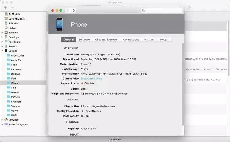 Mactracker 可以免费下载,而且有 iOS 的版本。不过比较可惜的是,目前它还未收录 iPhone XS 系列产品的信息,只能等待作者日后更新了。