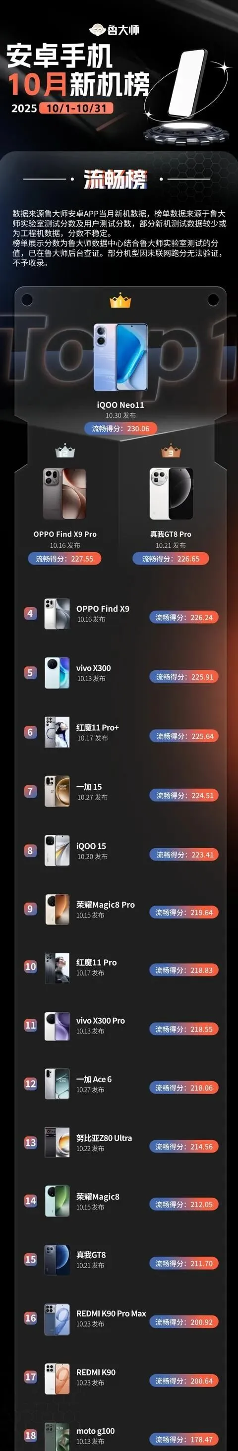 榜单背后,安卓旗舰三大趋势愈发明显:OV系品牌强势领跑,iQOO、一加加上OPPO集体爆发,九成席位被占据;芯片阵营双雄争霸,骁龙8 Elite Gen5和天玑9500各有亮点,厂商调校成就最终排名;性能比拼转向综合体验,只有芯片强,系统和散热没跟上,同样会被刷下来。
