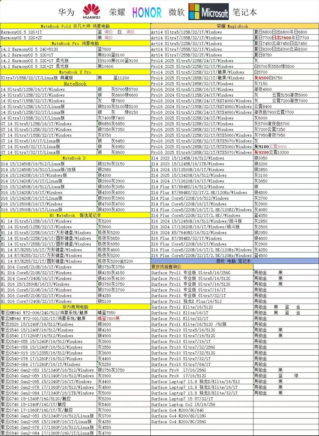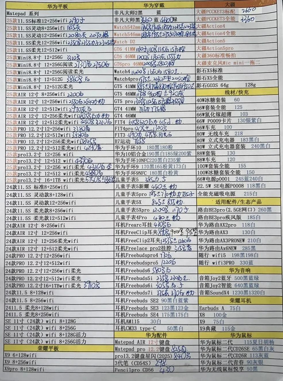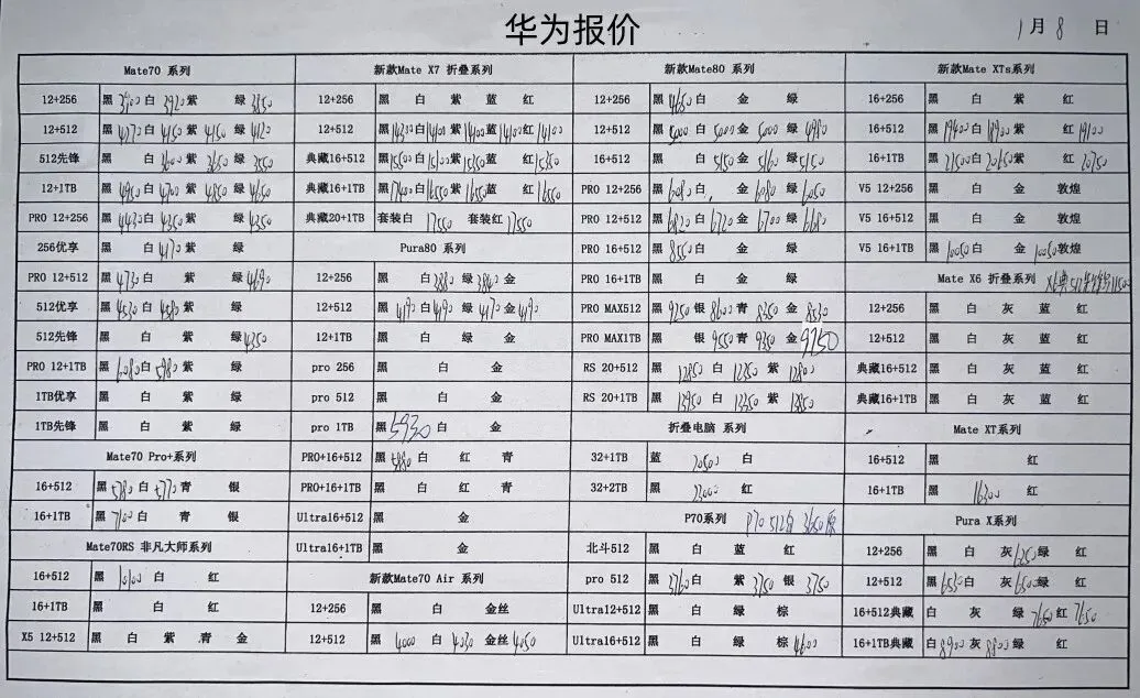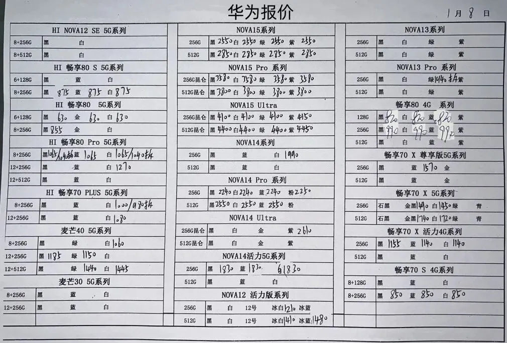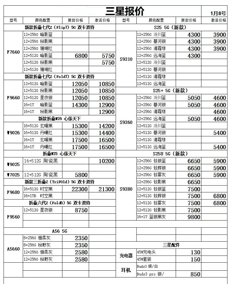 华为平板手表和三星报价不常更新