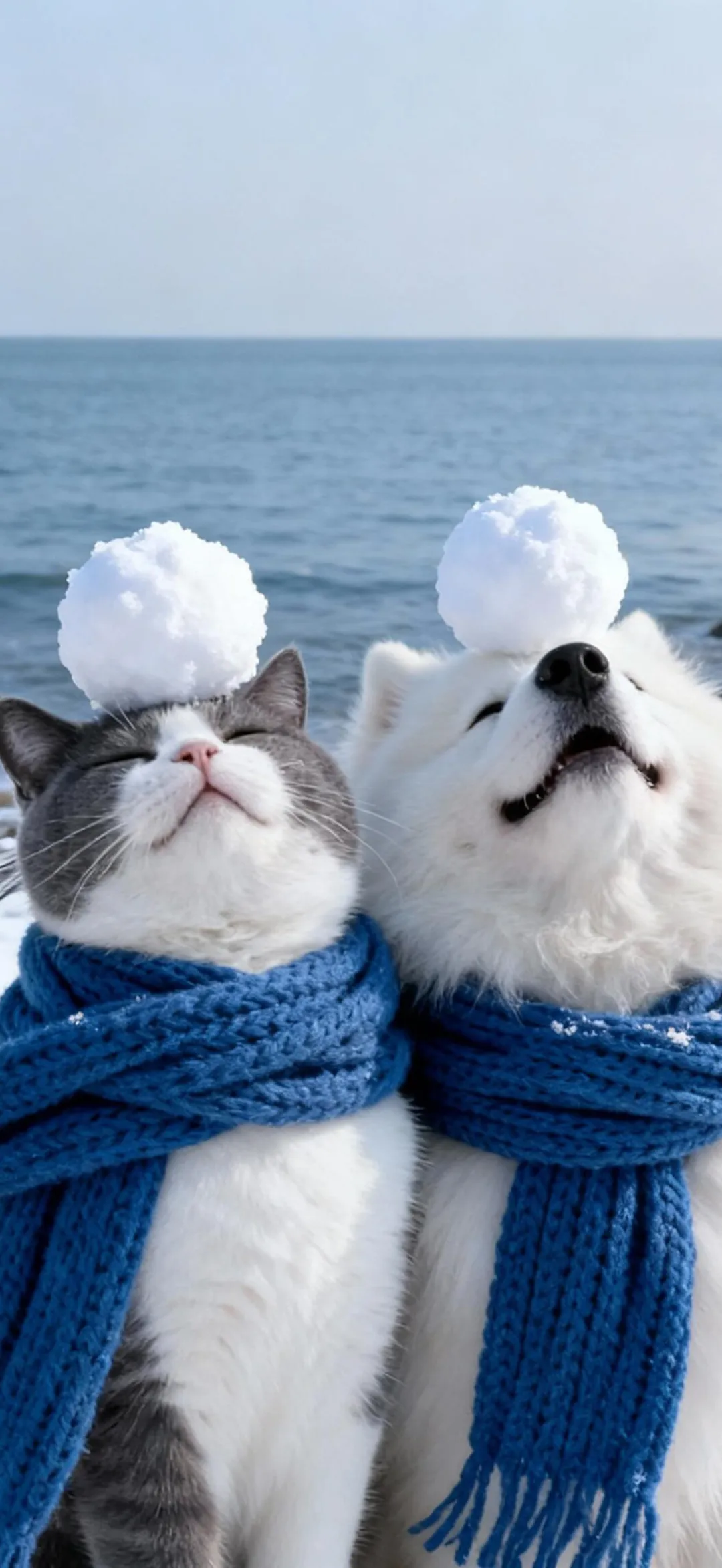 iOS26·猫猫狗狗雪景壁纸·好萌!!!