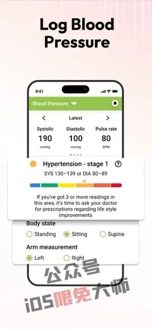 【心率监测器 - 心跳】一款血压和心率监测器工具,采用先进技术设计,帮助您每天记录、监控和分析血压、心率、脉搏等。目前软件正在内购限免,获取时注意确认价格,手慢无!