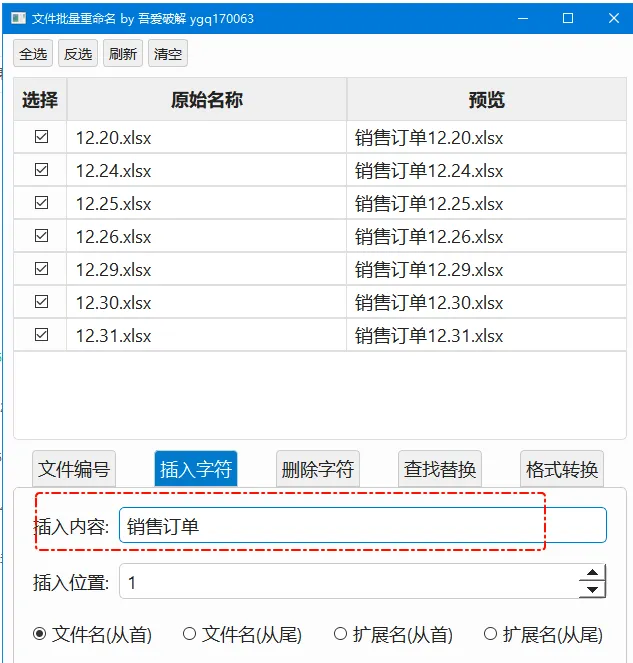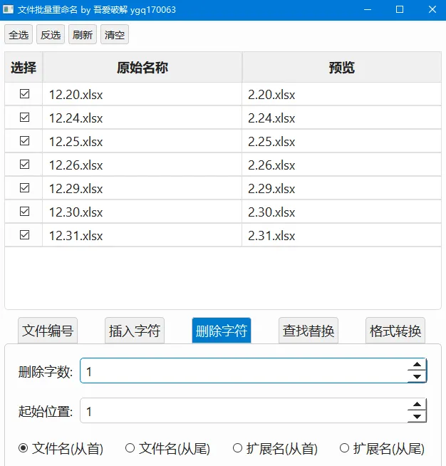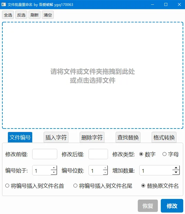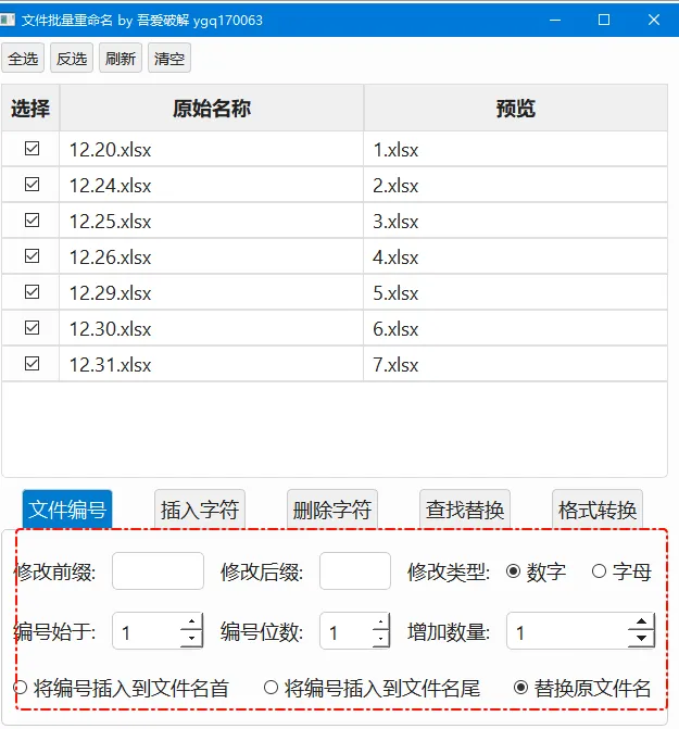 这是一款由吾爱大佬@ 吾爱破解 ygq170063开发的文件批量重命名软件,界面简洁,不占内存。最重要的是不需要支付任何费用,绿色无广告,真是一款良心软件,有手就能用!