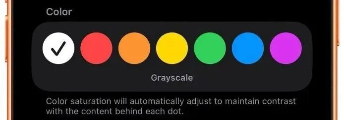 Apple 更贴心的是,颜色饱和度会自动适配背景,确保圆点始终清晰可见且不干扰屏幕内容浏览。