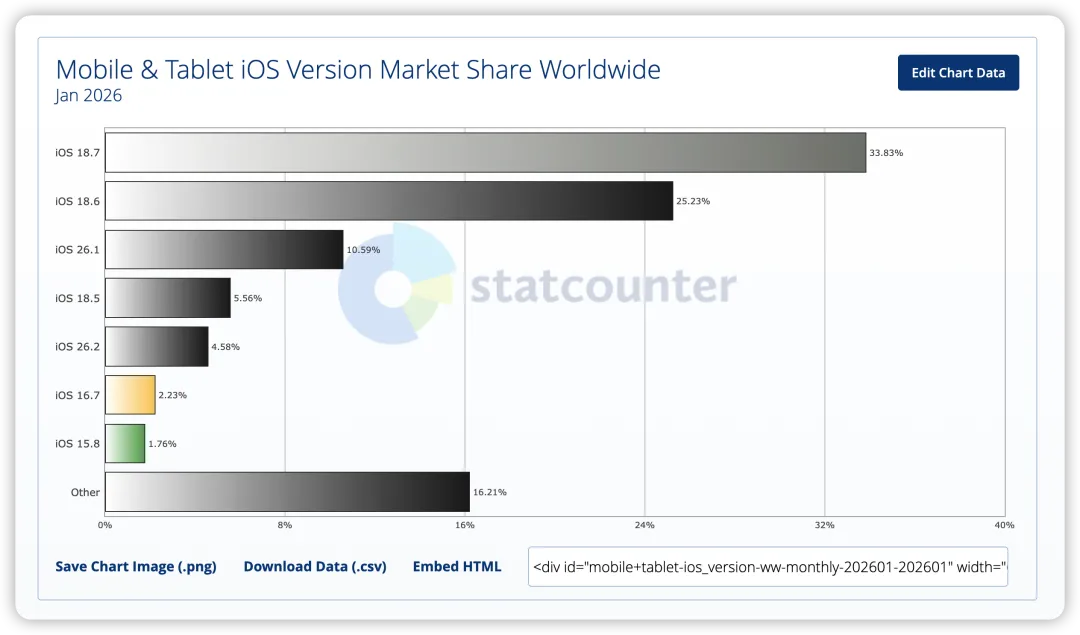 iOS 18.7 版本占比 33.8%