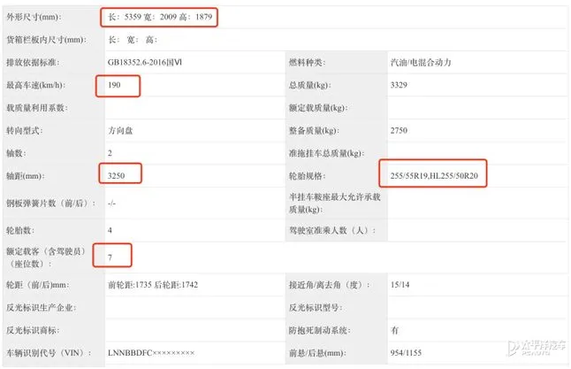 车型规格方面,这款车车长超过5.3米,车宽2米,轴距达3250mm,定位为大型MPV,座椅配置采用“2+2+3”的七座布局。
