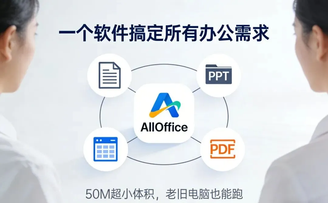 如果你跟我一样电脑内存小,装不下一堆软件,直接冲 AllOffice!它把文档、表格、PPT、PDF 转换全整合在一起,打开一个软件就能搞定所有事,电脑再也不会卡到死机~体积小到离谱