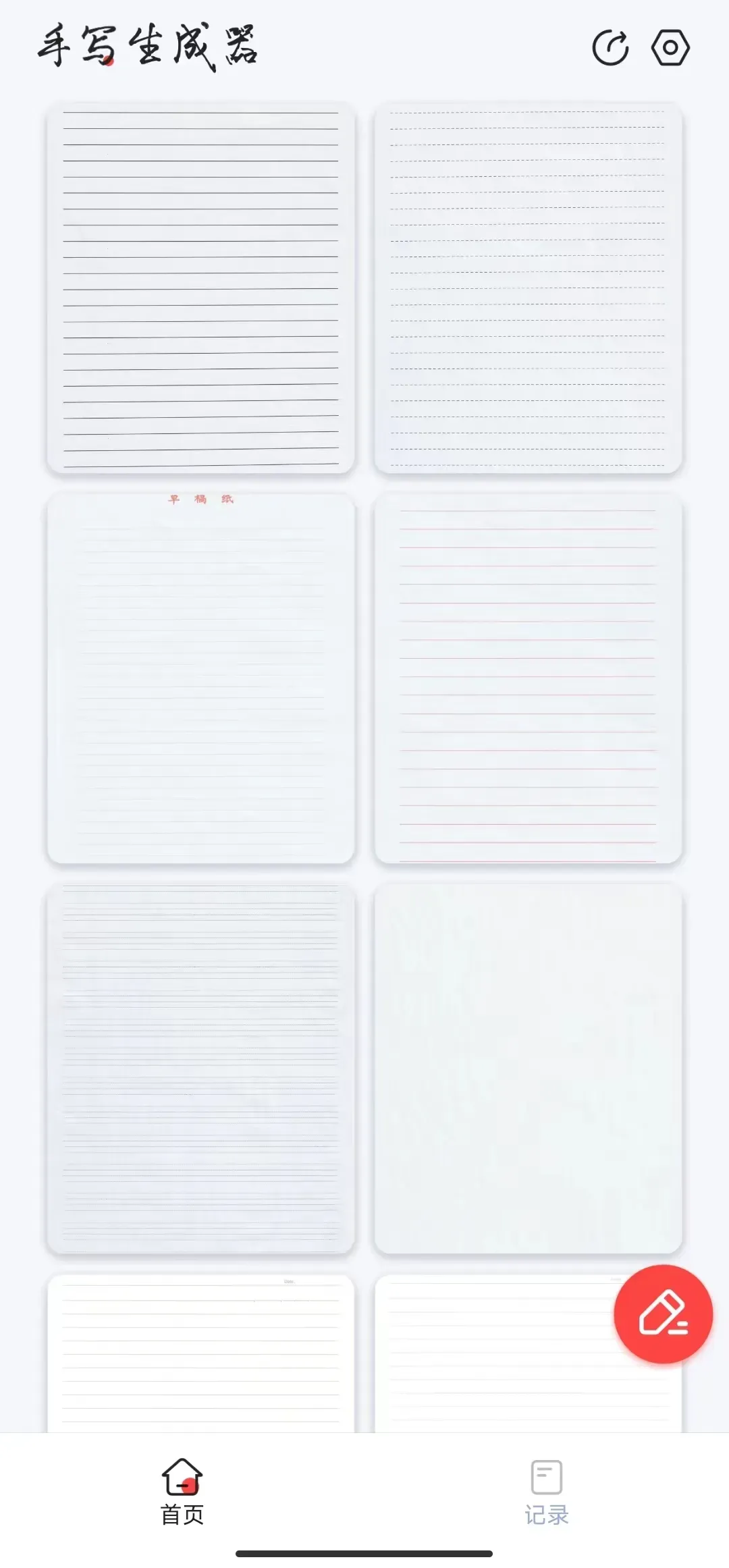 第一款要分享的是安卓端手写生成器,这是一款无广告、无套路的纯免费良心工具,操作简单易上手。打开软件后,先在首页挑选心仪的纸张模板,选定后就能进入编辑界面开始创作。