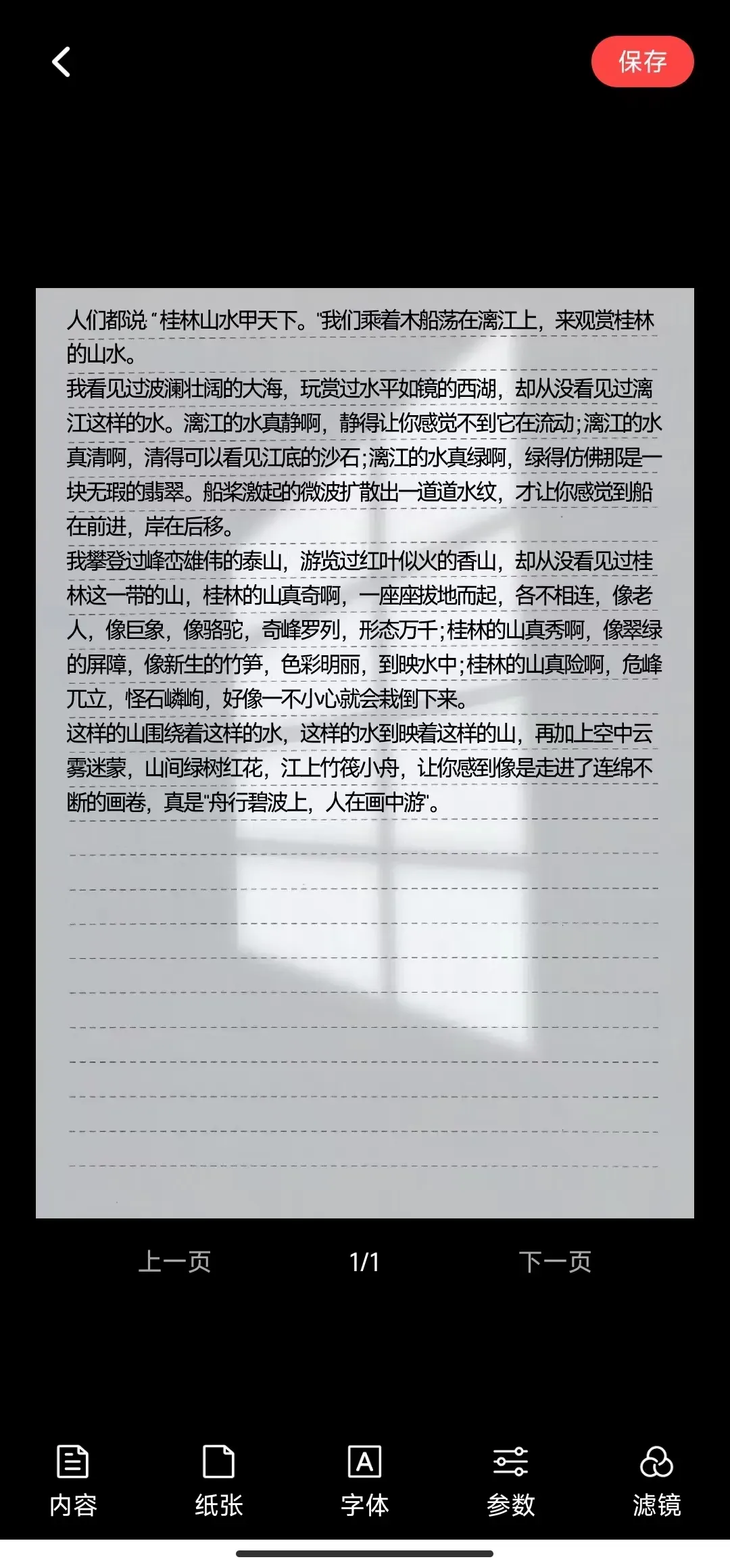 除此之外,软件还支持为纸张添加滤镜和逼真的纸张纹路,让生成的手写内容质感拉满,看起来就像真的手写在纸上一样。