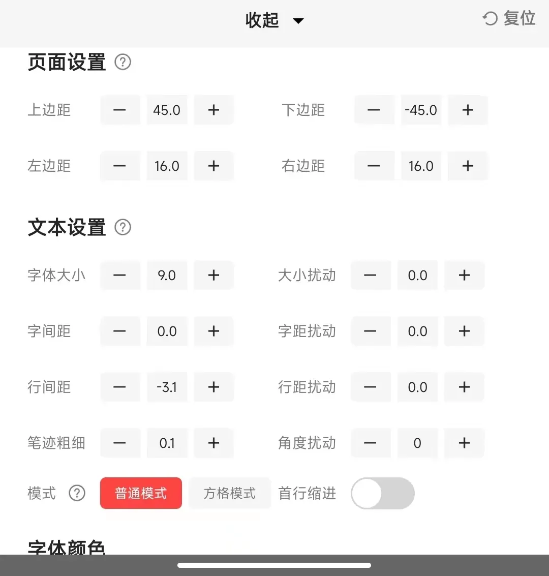 其中的参数设置功能尤为实用,不仅能调整页面边距,还能自定义字体大小、字符间距、行间距以及笔迹粗细,甚至可以修改字体颜色,精准打造专属手写风格。