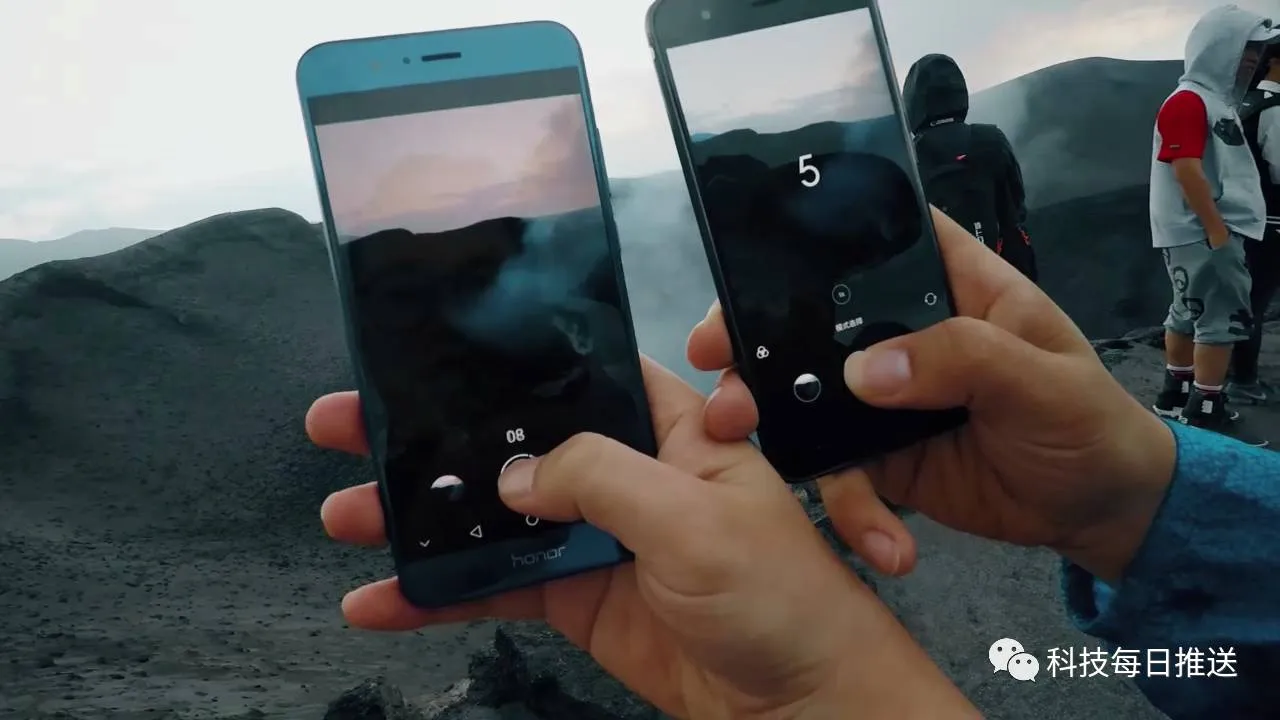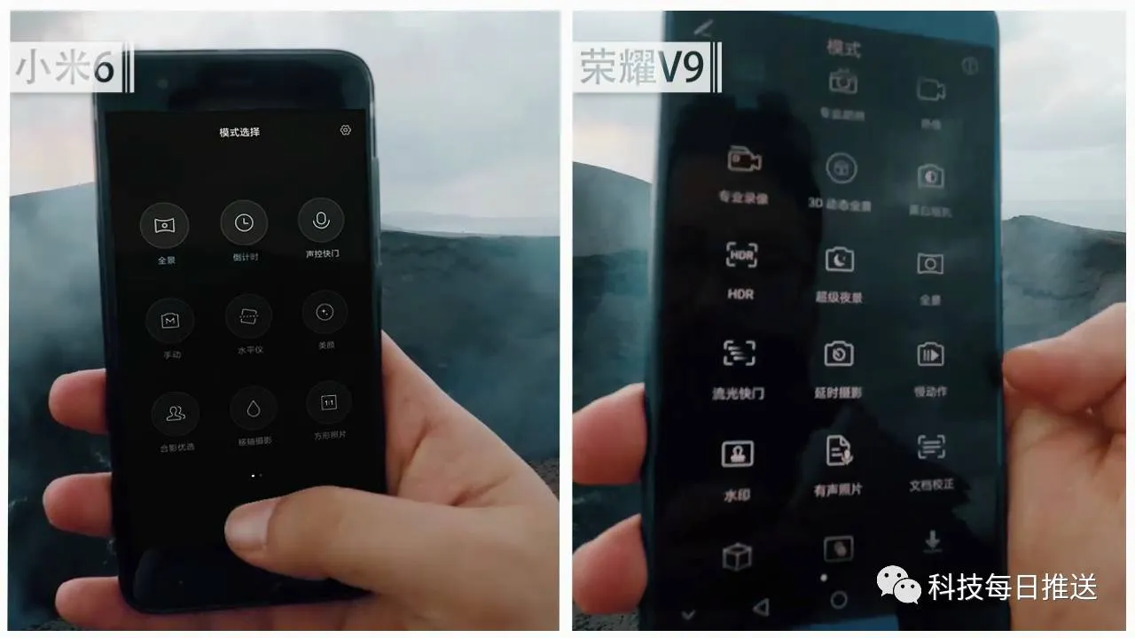 在拍摄火山时,相机的启动速度,明显荣耀V9更快。另外,在拍照功能的数量上,荣耀V9可以说是不留情面的吊打小米6,场面一度十分尴尬。