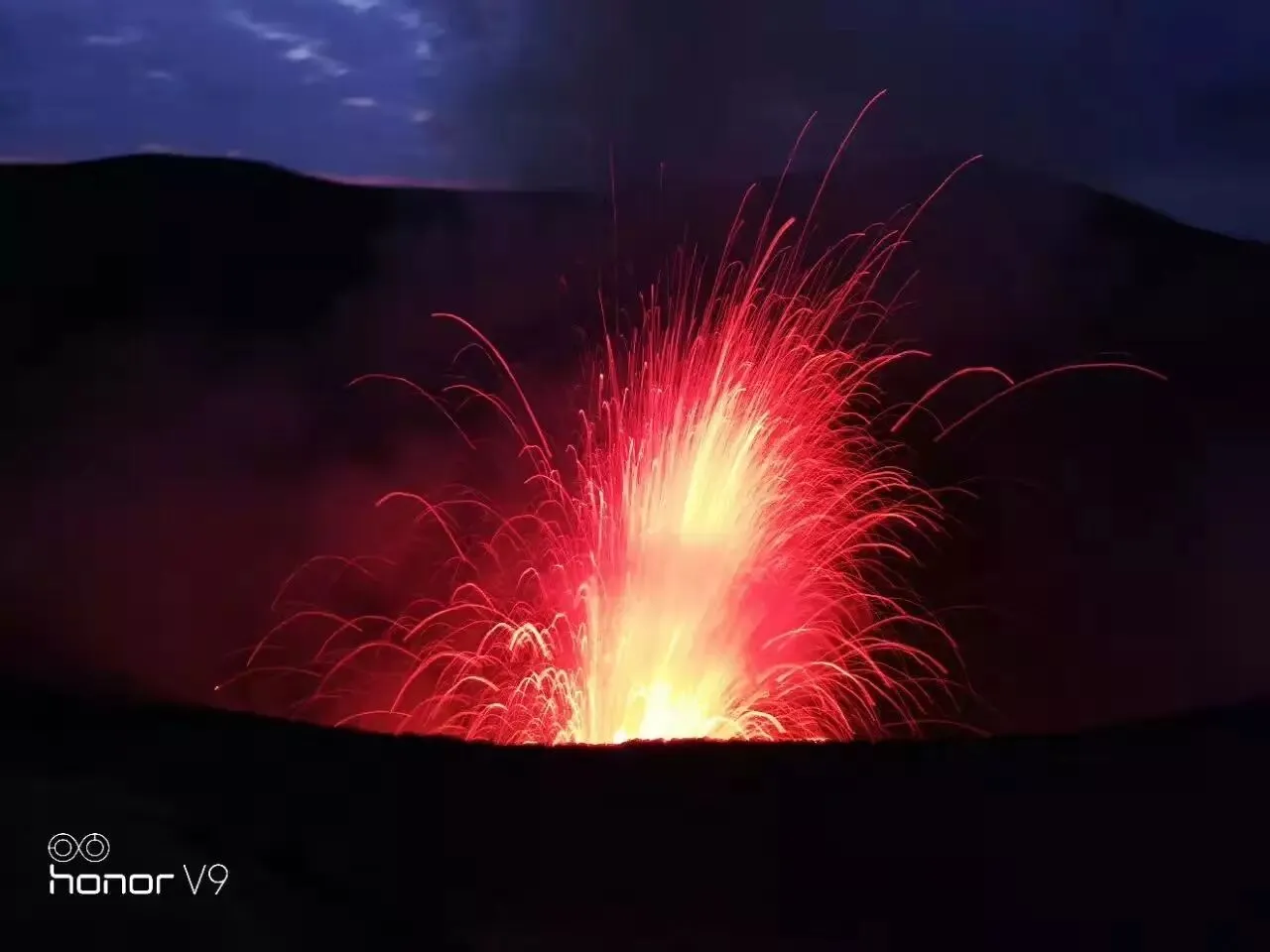 分享一张荣耀V9实拍的火山喷发效果,cool!!