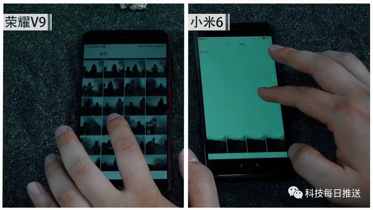 打开相册,小米6存在加载白块过程,相比之下,荣耀V9则是秒开,查看图片的体验和速度都相对更好。