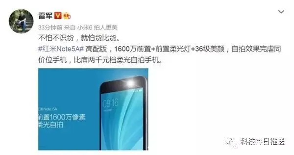 魅族既然有魅蓝,小米有红米,雷军微博也直接曝光了红米5A。