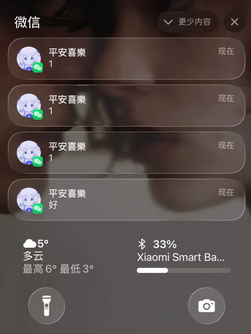 当好友发送消息过来后,锁屏上会显示对方的微信头像,这样更加有个性化更有辨识度了;