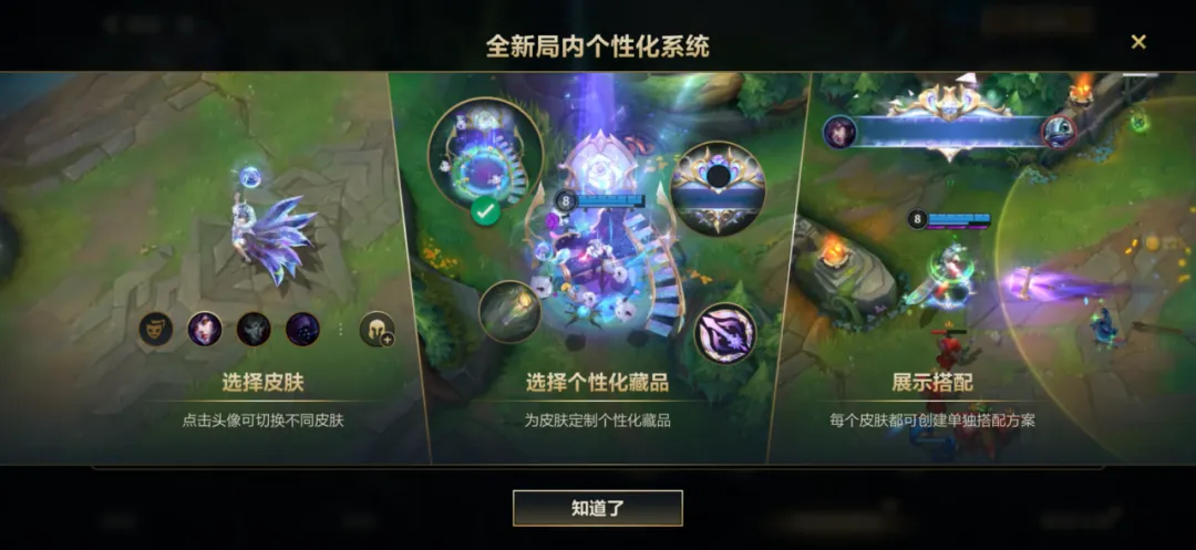 另外新版本每款皮肤都可以设置单独的个性化道具,可以给自己喜欢的每款皮肤都配置不同的家园卫士、回城特效等!而不是非要全部英雄皮肤都统一设置,这点还是蛮不错的,毕竟很多皮肤搭的回城特效和家园卫士风格都不同!