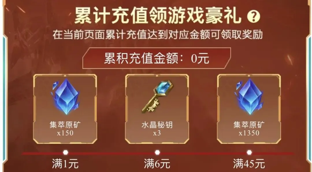 ⭐专属奖励:充值完可以在橘子这里直接领取专属累充奖励,包含大量的集萃原矿和战利品钥匙以及空间源能,都属于额外白给的东西!