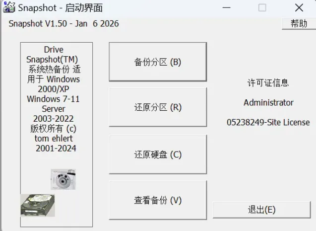 Snapshot 是一款体积仅 1.38MB 的系统备份还原工具,虽然体积小,但功能一点不弱。