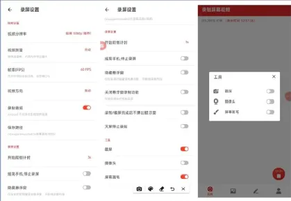 其中视频分辨率、视频质量、视频帧率都支持选择切换,视频方向包括横屏和竖屏,截屏工具支持在录屏的时候截图并且自动保存。