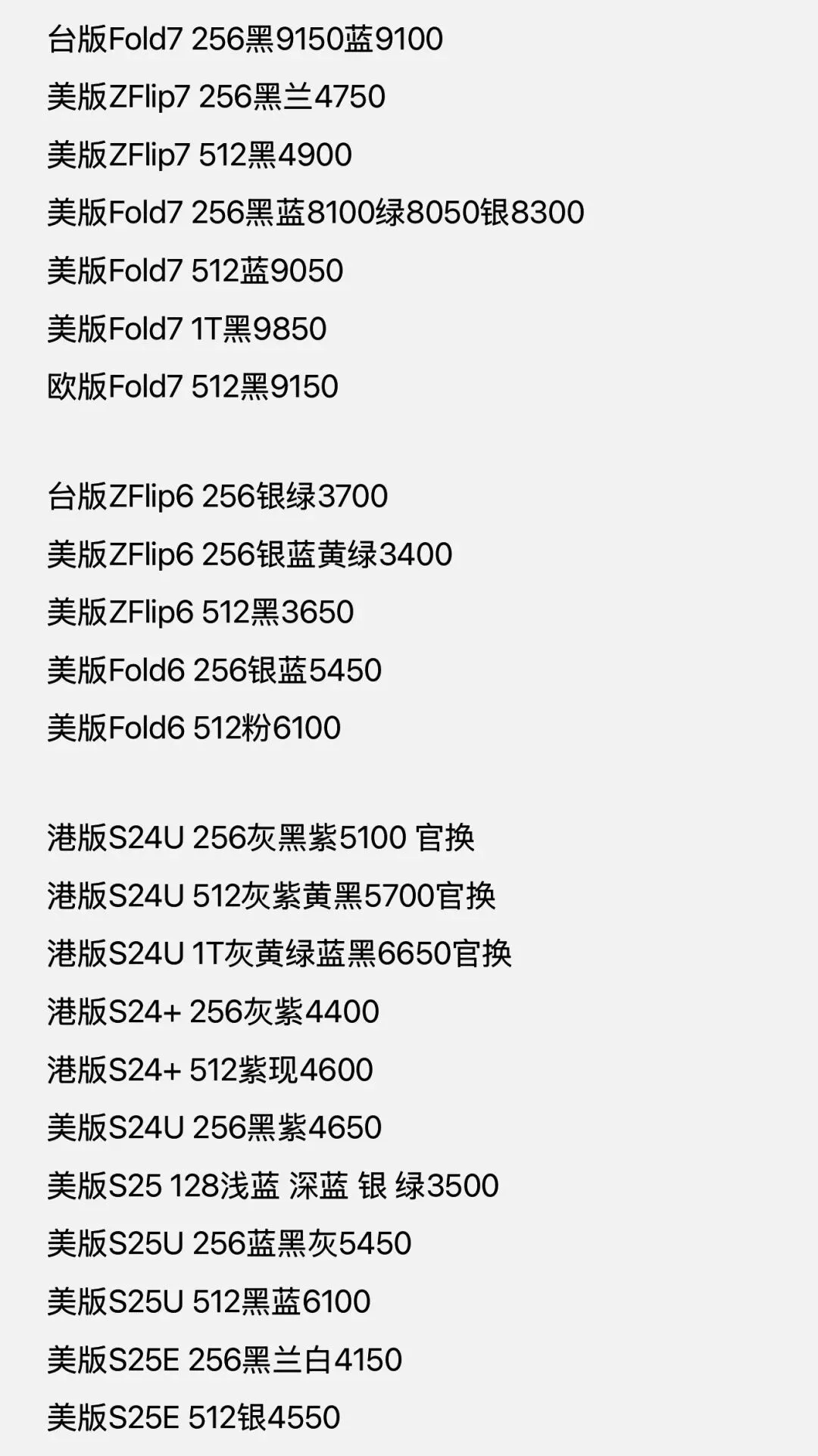 其他版三星全新机批发价全套
