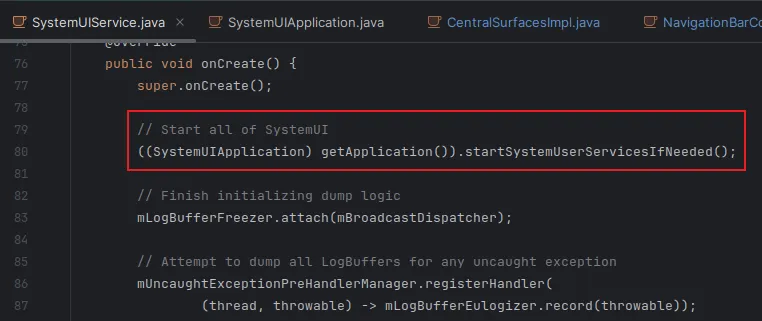 onCreate()方法中调用SystemUIApplication.startSystemUserServicesIfNeeded()方法。