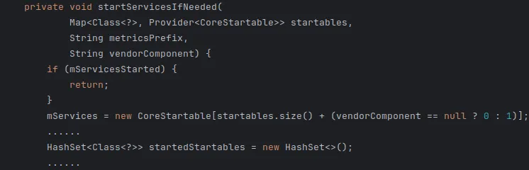 startServicesIfNeeded()方法中执行启动子服务的方法。