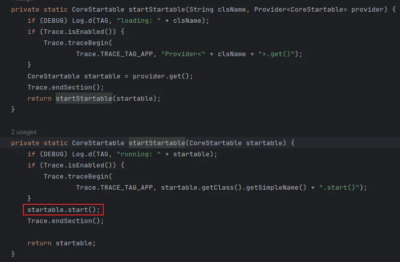 startStartable()方法中运行子服务。