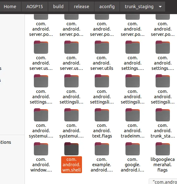 进入 trunk_staging 目录下,有一些命名像是软件包名的目录,其实就是包名,这里重点关注 com.android.wm.shell 这个目录。