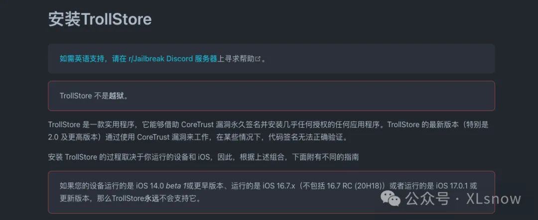 iOS16.7 以及 17.0.1以上不支持安装巨魔,除非苹果再次搞砸CoreTrust!