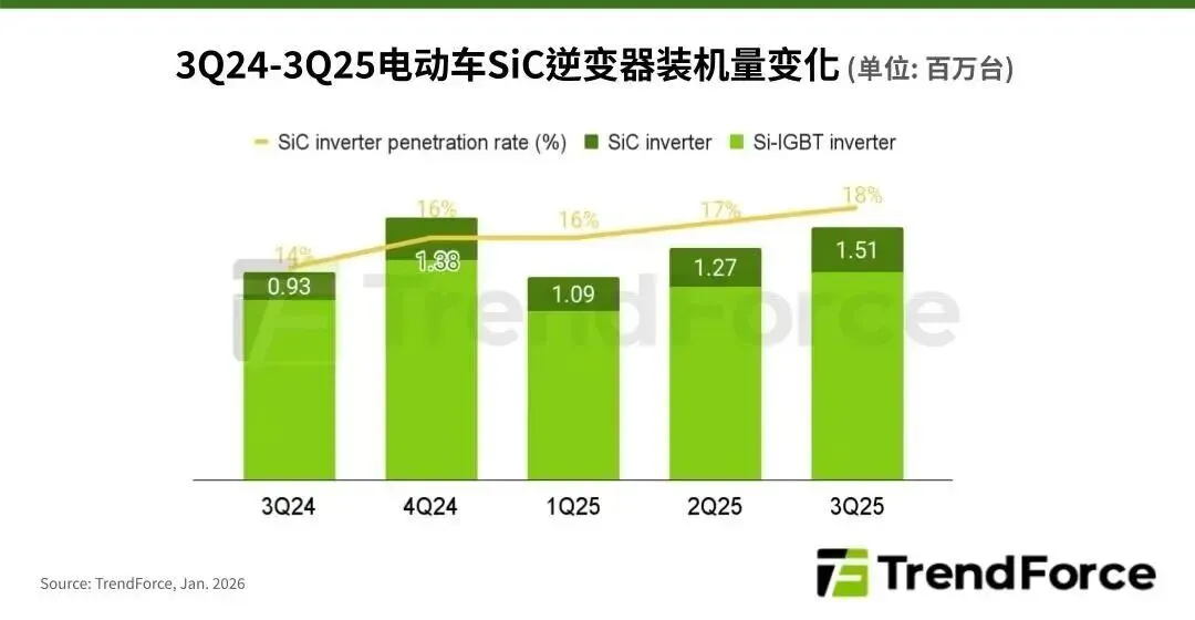 3.机构:2025年Q3全球电动车SiC逆变器装机量创新高,中国占总装机量约75%