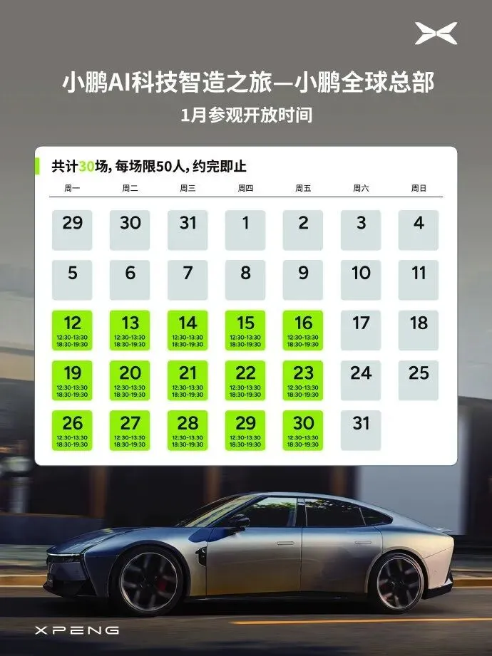 4.小鹏全球总部向公众开放体验:1月12日起可预约参观