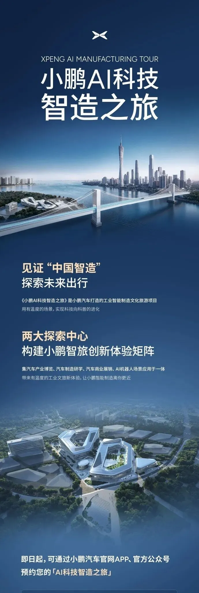 1月9日,小鹏汽车正式启动“小鹏AI科技智造之旅”项目,首次向公众开放小鹏全球总部与广州、肇庆智造基地,并面向中小学生开设汽车制造实践课程,最早1月12日可预约参观。