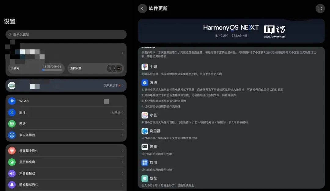 这波更新来得有点意思。1月11号,华为MatePad Edge的用户群里就悄悄炸了锅,不少人在后台刷出新的系统提示——HarmonyOS 5.1.0.291版本,包体大小776.49MB,不声不响地推了上来。分批推送的老规矩没变,有人当天就吃上热乎的,也有人还在等,挺折磨人。