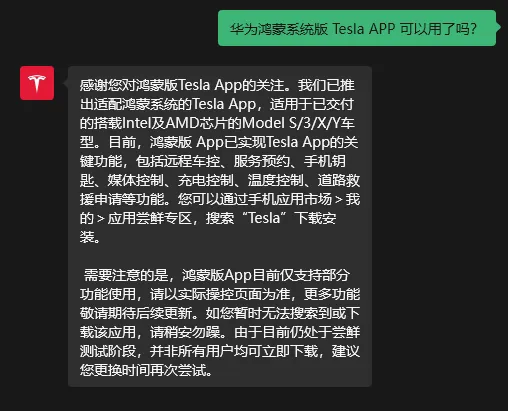 特斯拉官方确认:鸿蒙版 Tesla APP 已推出,更多功能后续更新