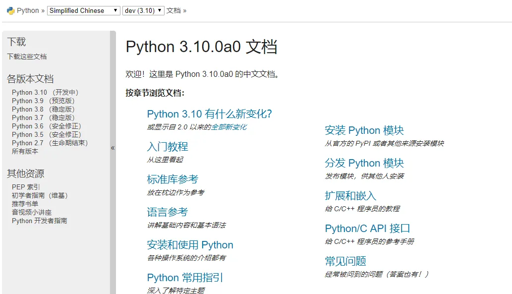 Python 解释器及丰富的标准库,提供了适用于各个主要系统平台的源码或机器码,这些可以到 Python 官网 https://www.python.org/ 免费获取,并可自由地分发。许多免费的第三方 Python 模块、程序、工具和它们的文档,也能在这个网站上找到对应内容或链接。