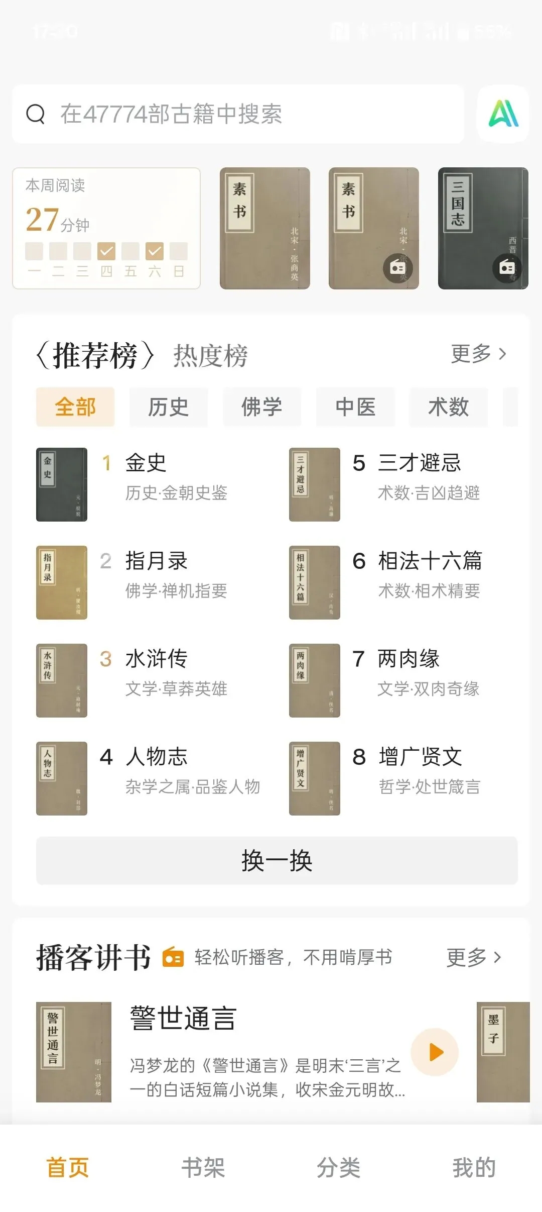 目前收录在其中的古典已经有47774部了,每篇古典都有原文的图片、注释、译文,分为“经部”、“史部”、“子部”、“集部”、“道教部”、“佛教部”、“出土文献部”、“文书档案部”等八大部,而且有些经典已做成播客的方式,非常便于随时随地的阅读学习。