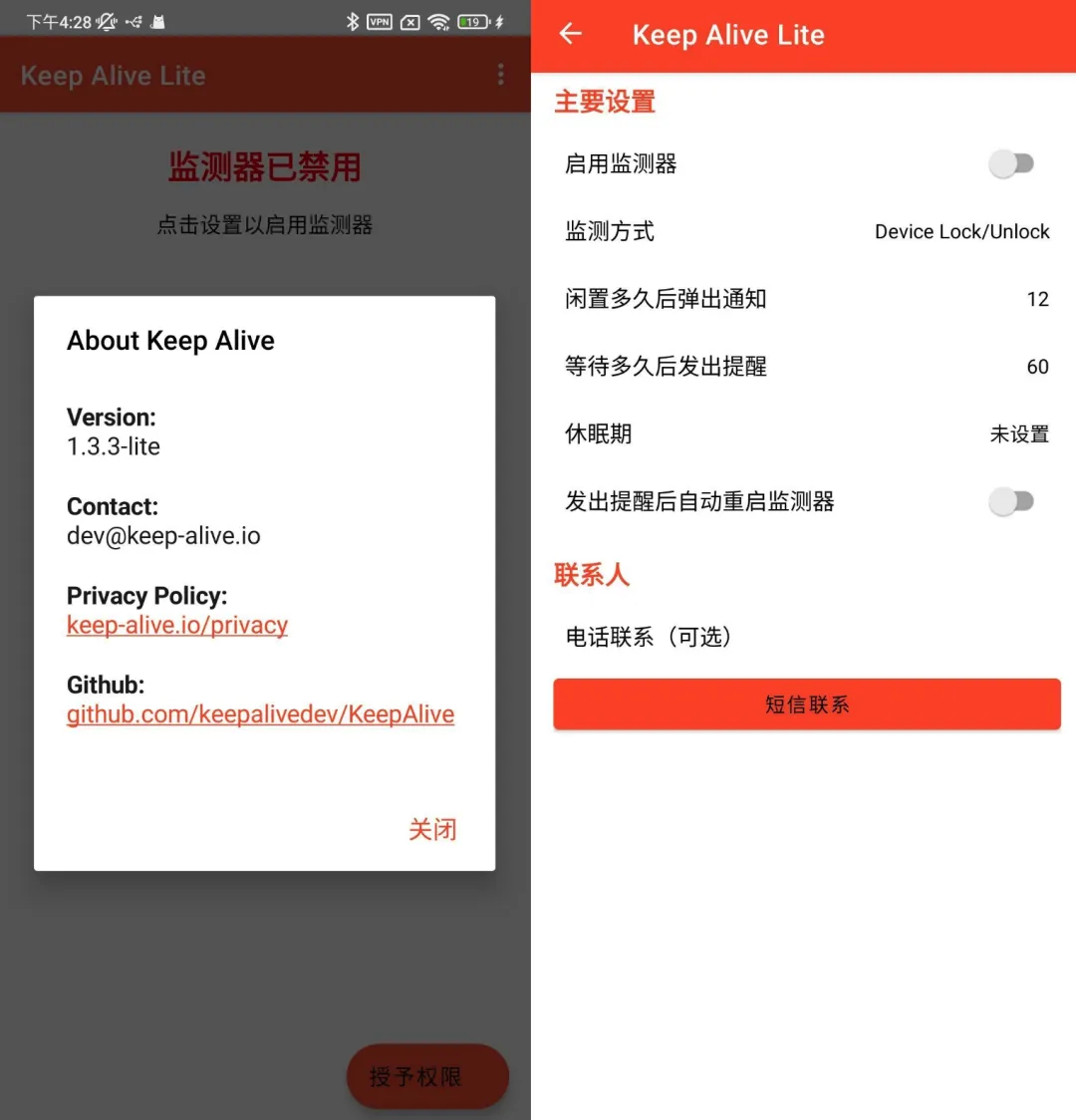 在说Keep Alive之前,我们先聊聊「死了么」爆火的底层逻辑。根据数据,我国独居人群已超1.25亿,“孤独死”成了悬在每个人头顶的隐忧。加班晕倒、突发疾病、意外受伤……这些看似遥远的风险,其实就藏在独居生活的每一个角落。而「死了么」的聪明之处,就在于用最极简的方式解决了最核心的需求:无需注册登录,不用填复杂信息,只要设置好紧急联系人邮箱,每天花1秒点击“我还活着”签到即可;一旦连续两天忘记签到,系统就会自动发邮件提醒联系人“请检查TA的安全状态”。8块钱,一杯奶茶的钱,买断一份“有人惦记”的安全感,这波消费让无数人直呼“真香”。但它的短板也很明显:仅支持iOS、只能通过邮箱提醒(打开率不足15%)、功能相对单一。而这些遗憾,Keep Alive全帮安卓党补上了!安卓专属「安全感守护神」:Keep Alive 1.3.3 核心亮点