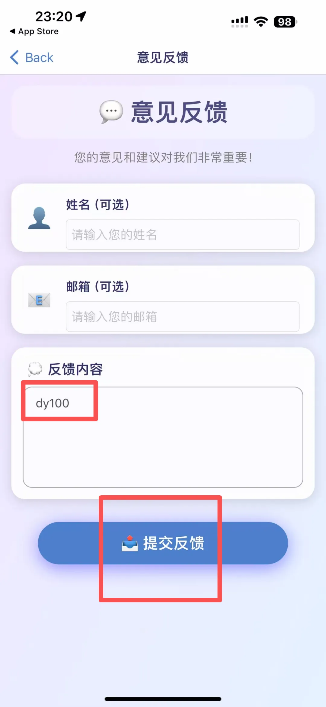 打开,点击意见反馈-在意见中输入【dy100】-点击提交软件自动变身(如未变身清理后台,再来一遍即可变身!)