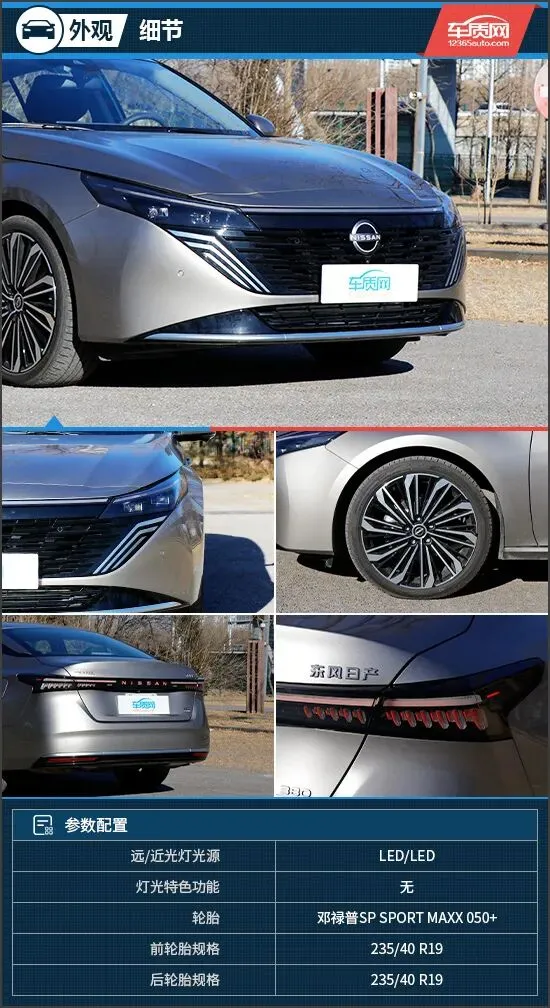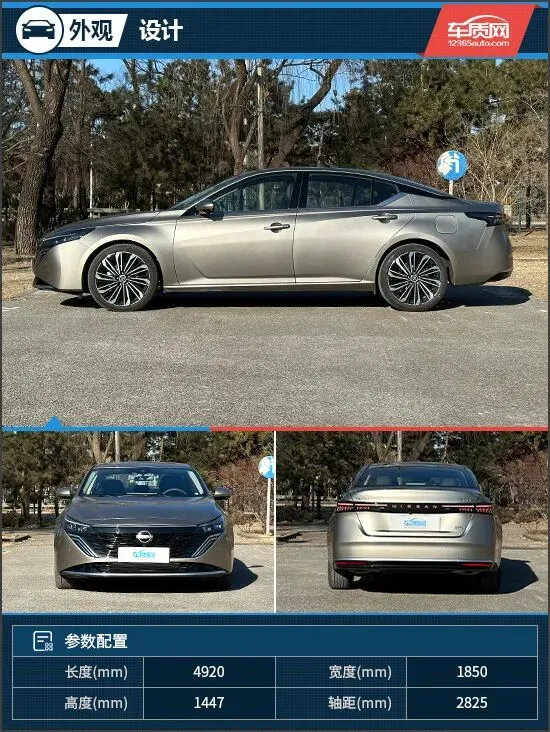 外观方面,评测车采用了全新的V-Motion无界之翼前脸,整体风格简约而富有高级感,一改老款车型的平庸形象。车身侧面,接近5米的修长车身搭配溜背式车顶线条以及犀利的腰线,既优雅又不失力量感。车尾换装全新的LED尾灯,中央嵌入可发光的日产英文标识,两侧还镶嵌模拟宝石切割与棱面的立体感灯体,精致感拉满。