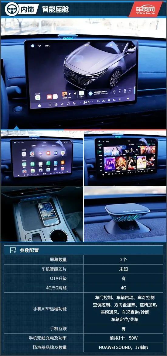 智能化是评测车的一大亮点,全系标配鸿蒙座舱5.0,其中,15.6英寸中控屏显示效果细腻,滑动切换也毫无延迟。语音助手“小艺”响应快至0.5秒,支持四音区识别,即便方言指令也能够精准解读,复杂指令一次搞定。值得一提的是,超级桌面2.0真正实现了手机与车机生态的无缝融合,海量华为手机应用能轻松“上车”,无需额外下载就能直接使用。其中,华为分享功能支持一键分享手机照片至车机,系统能自动提取上面的地理位置信息,用户可选择是否需要导航前往,十分智能。此外,车内还搭载了带有17个喇叭的HUAWEI SOUND音响,通过大师级调校还原细腻音质,打造出了如临现场般的震撼听感。