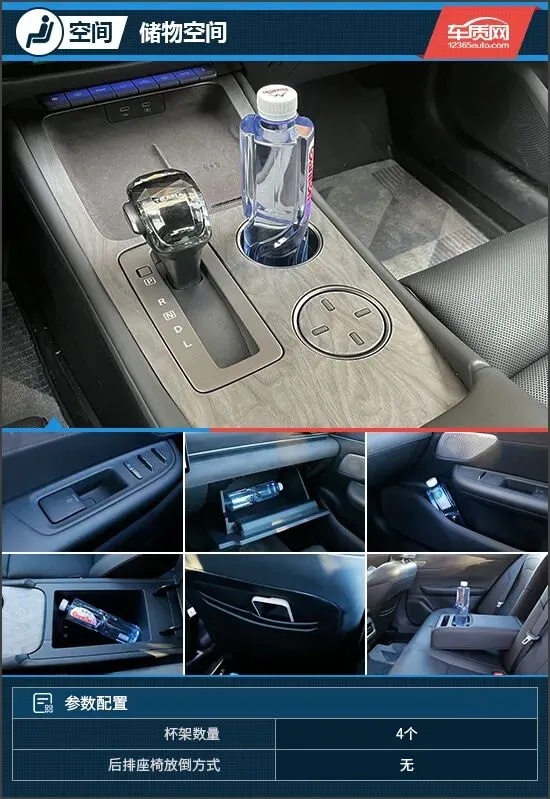 储物空间方面,全车提供25处收纳空间,大小物品都能找到合适的位置摆放,有趣的是,评测车的杯托采用了阻尼升降式设计,不仅简洁美观,升起状态下也不易积灰,清洁打理更省心。