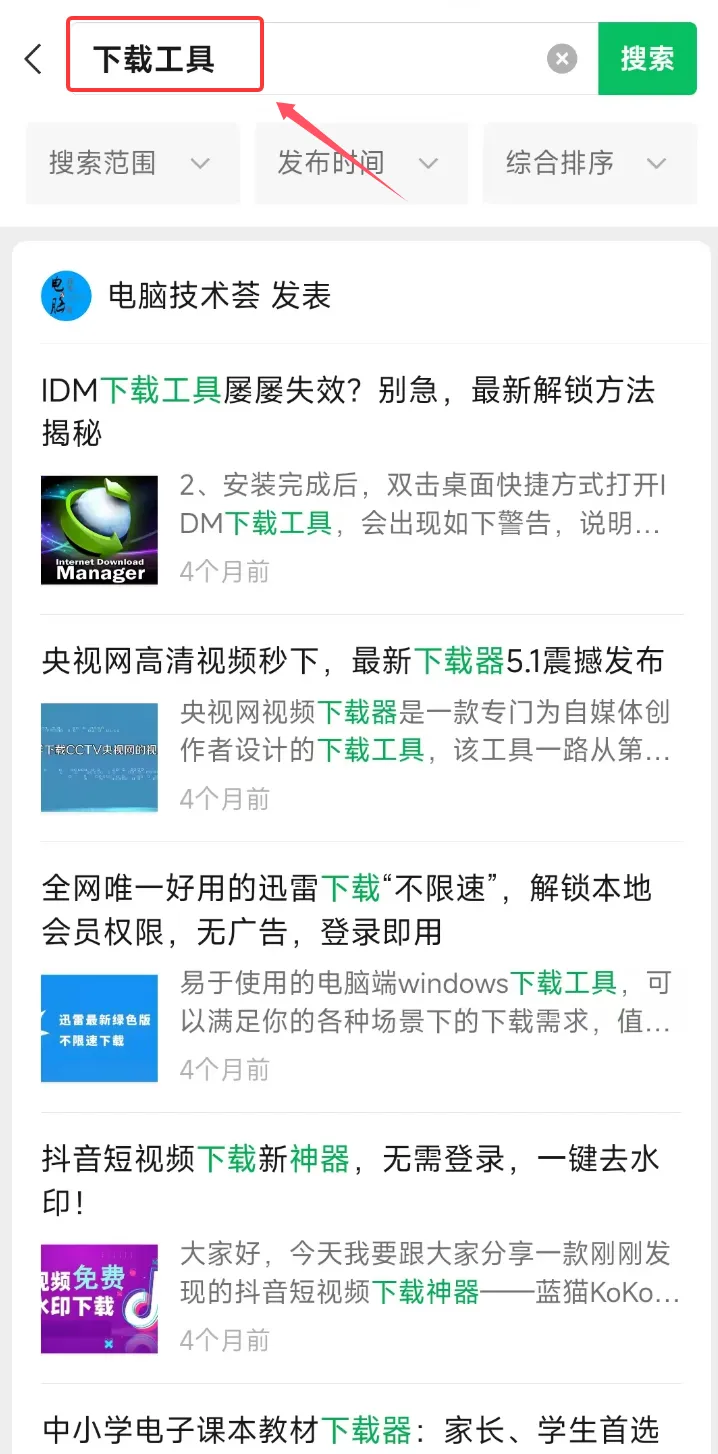 2、在搜索框内,输入关键字进行搜索,如"下载工具”,即可搜索到与下载工具有关的所有资源。