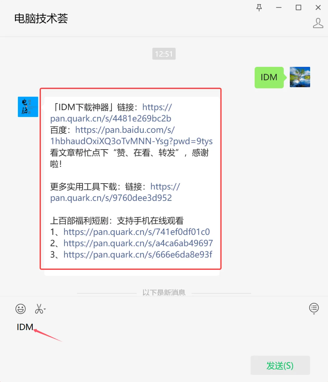 3、点击文章可以查看详细使用教程,回复文章中提示的下载”关键字”即可收到下载链接。怎么回复?就是点击发消息回复关键字。